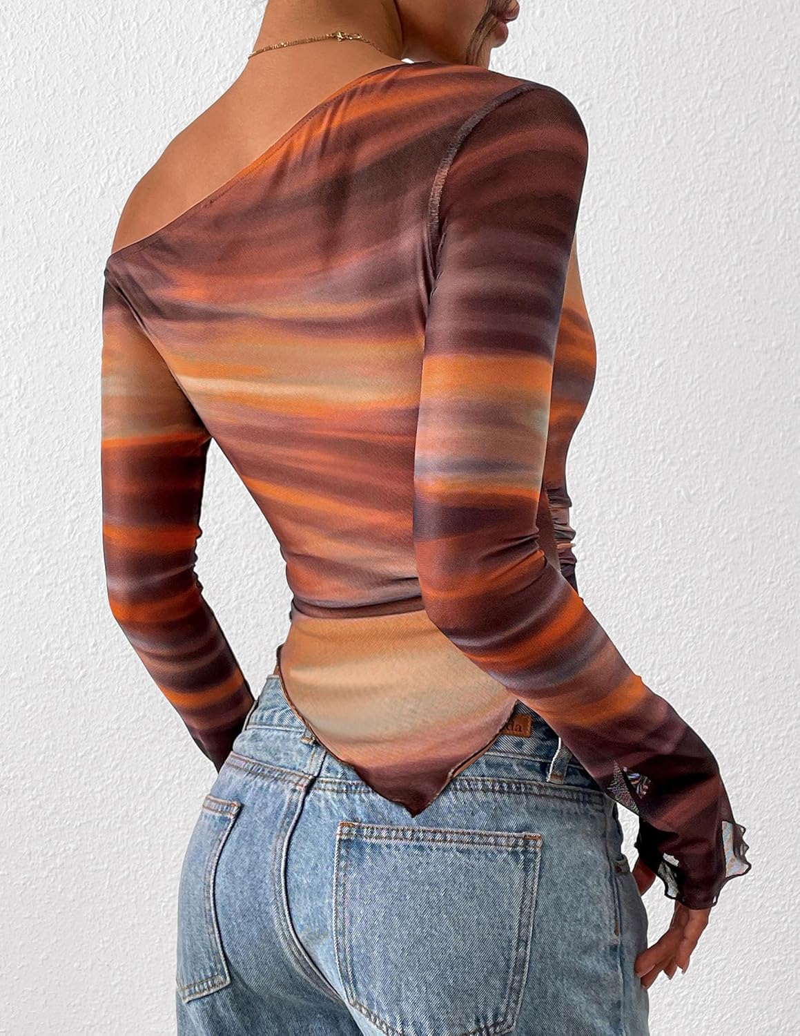 PRETTYGARDEN Womens Fall Trendy Off Shoulder Tops 2025 Mesh Long Sleeve Shirts