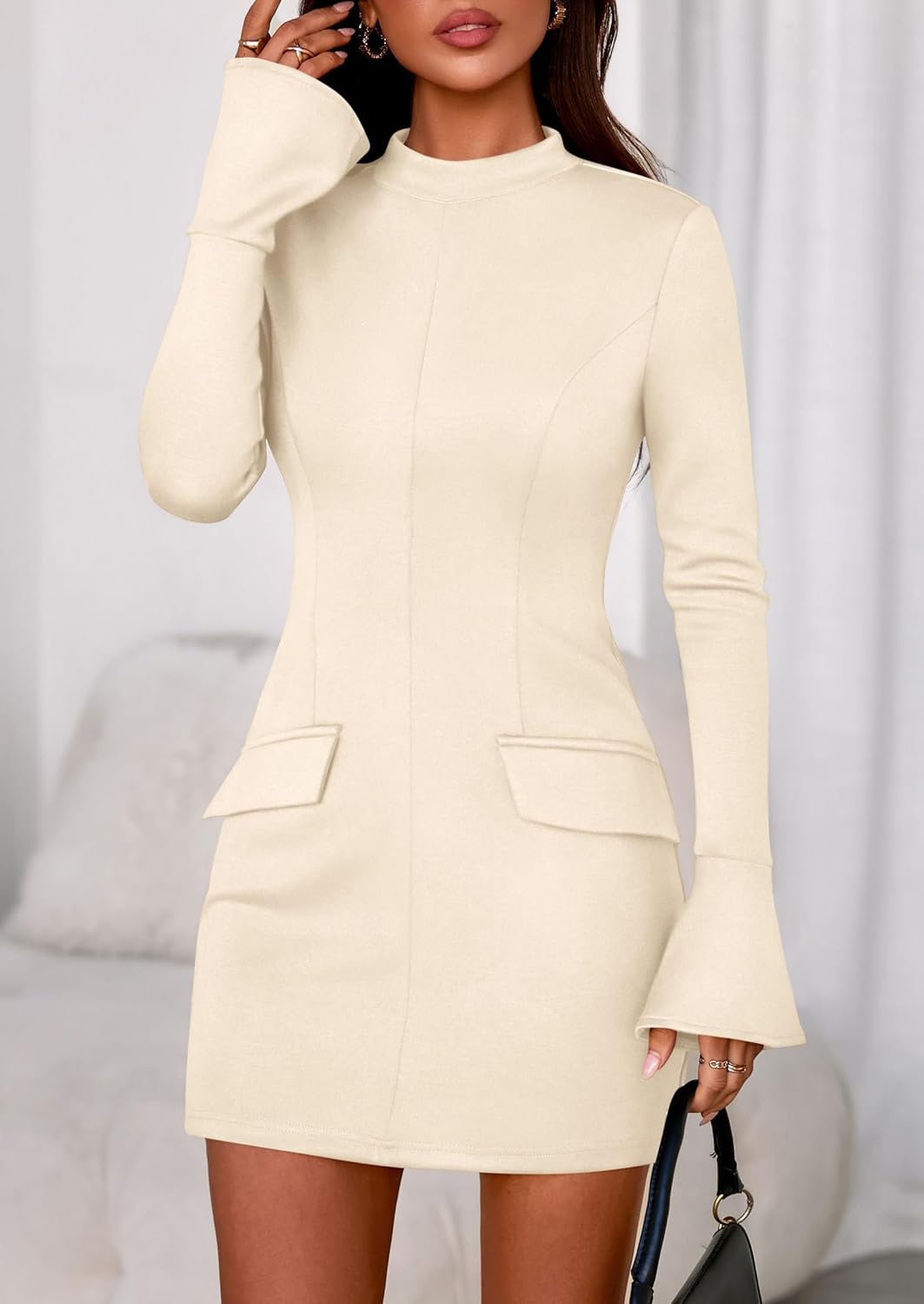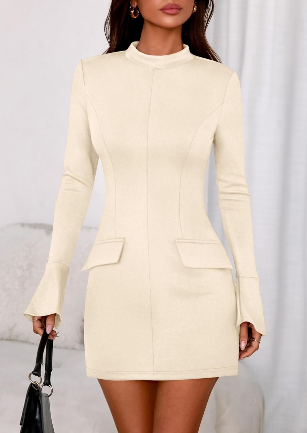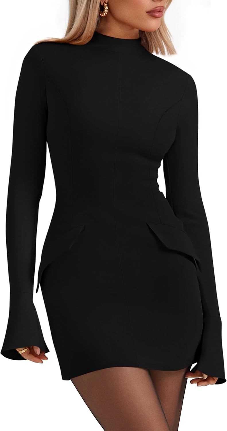 PRETTYGARDEN Mini Dress for Women Mock Neck Tight Fitted Dresses