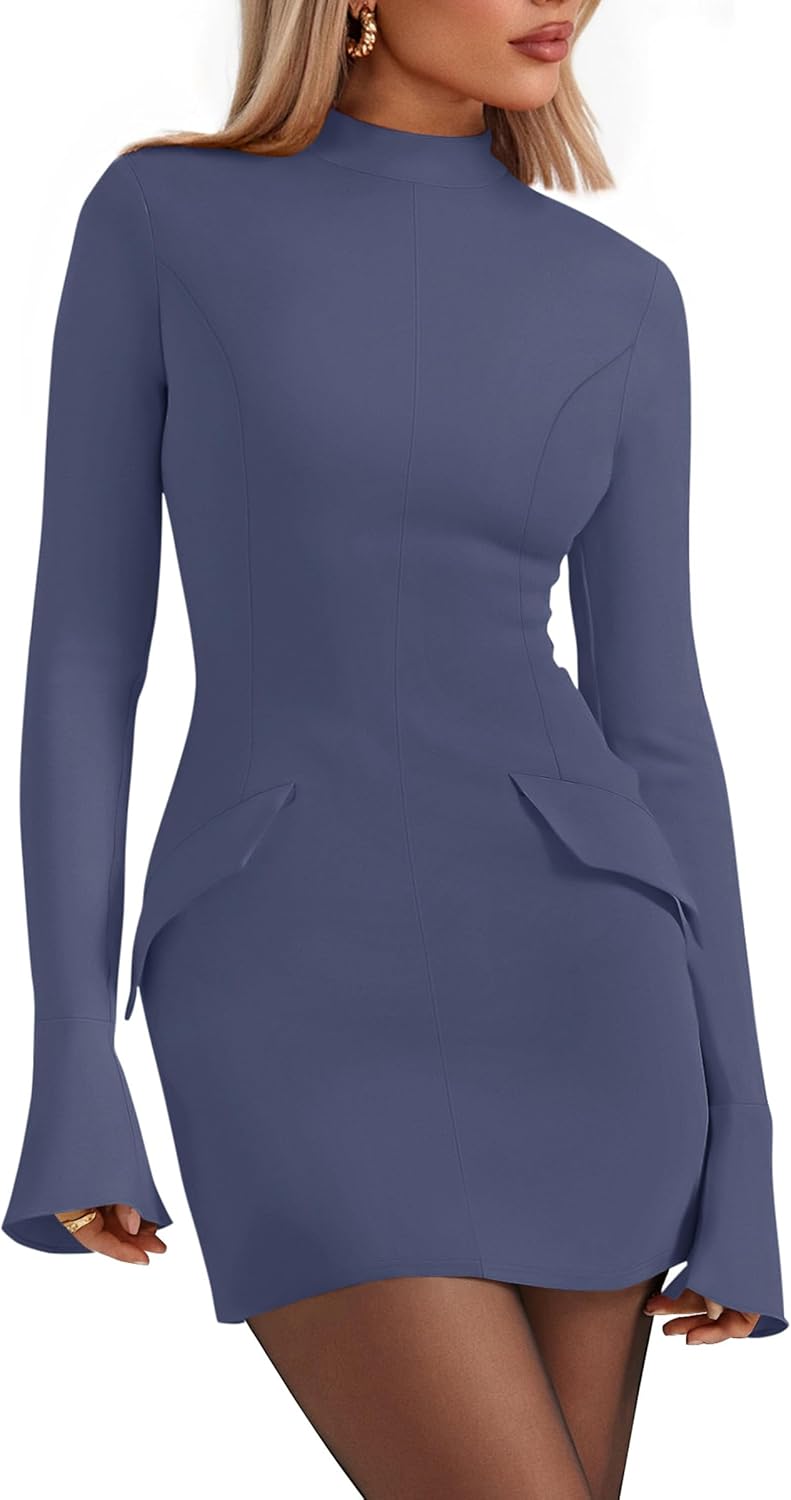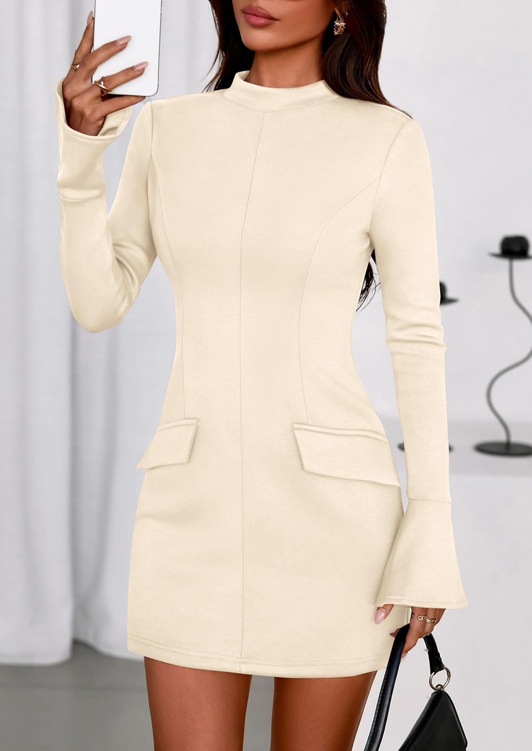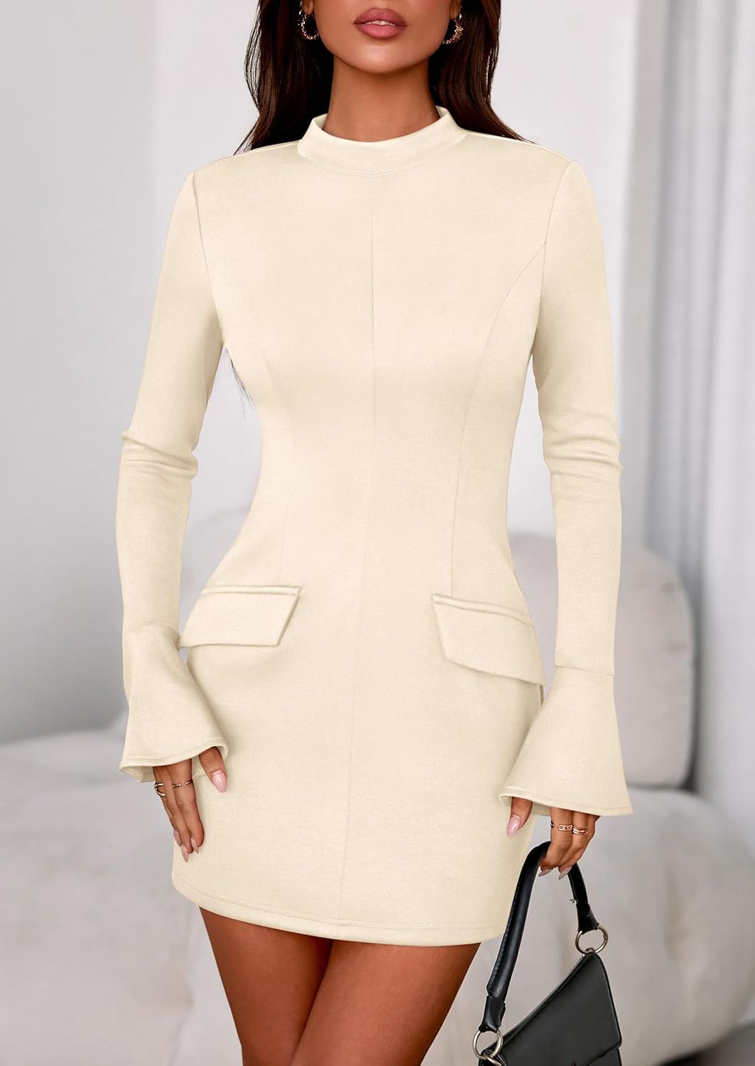PRETTYGARDEN Mini Dress for Women Mock Neck Tight Fitted Dresses