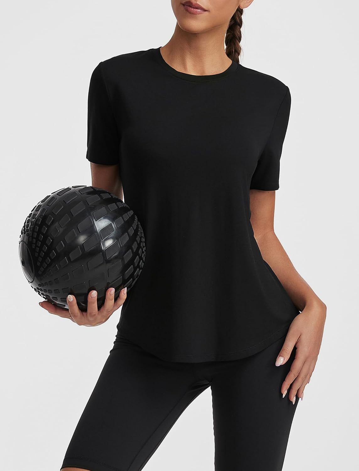 KAKOLA Loose Fit Workout Tops for Women Round Neck/ Loose fit/U hem