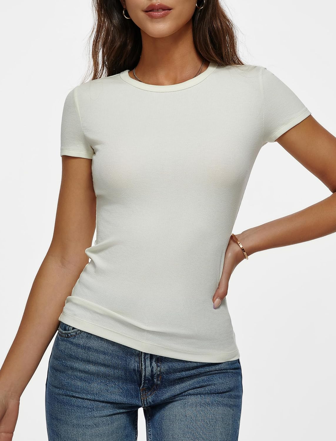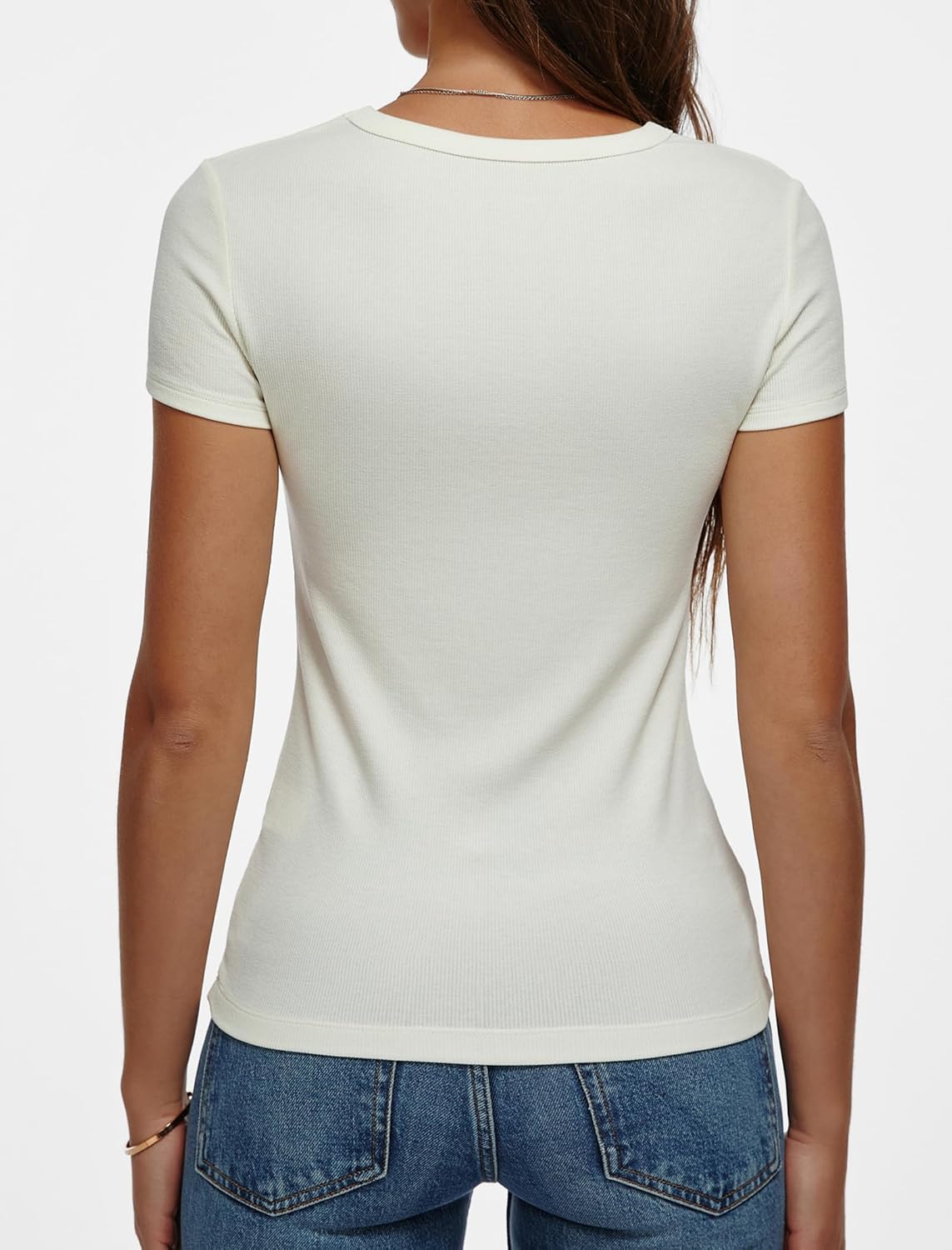 Ribbed Short Sleeve Tops for Women Cute Summer Tops
