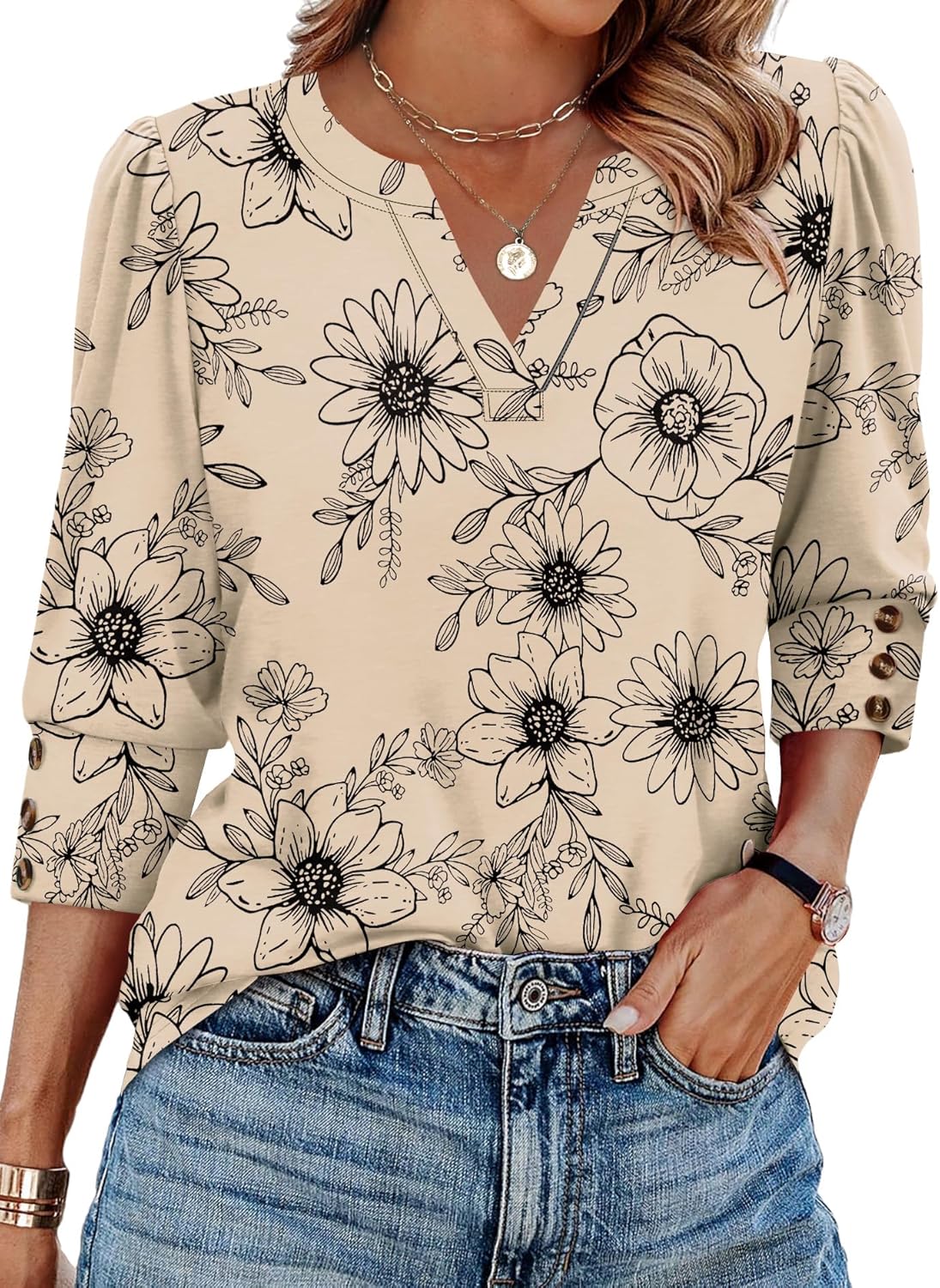 New-Season Women��s Tops �� V-Neck 3/4-Sleeve