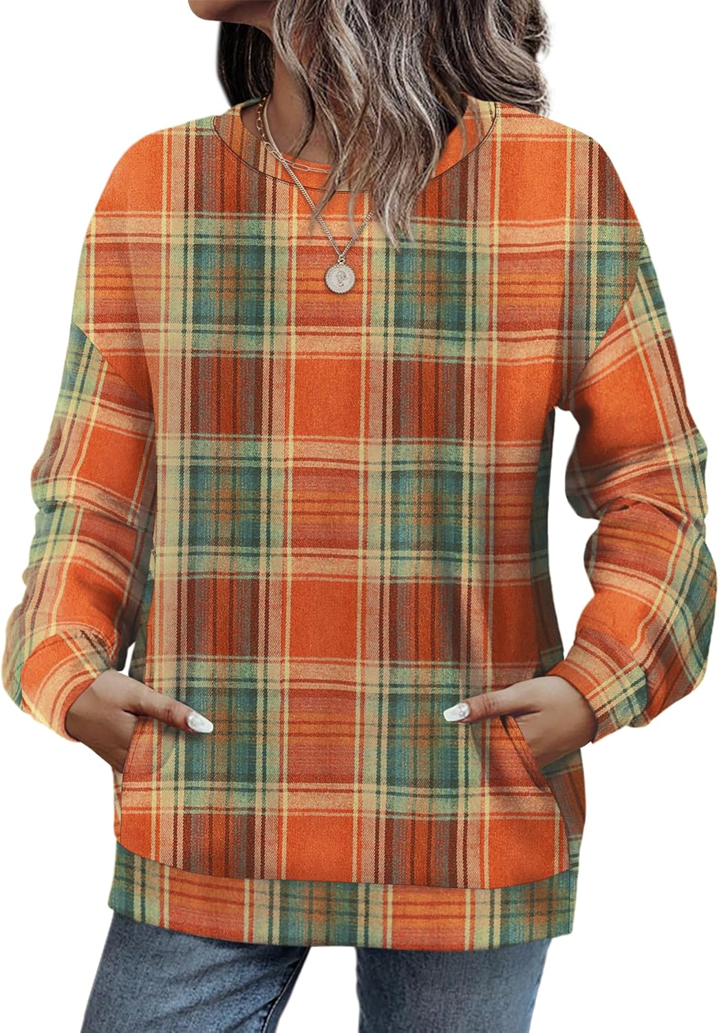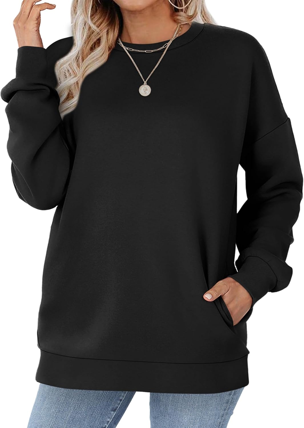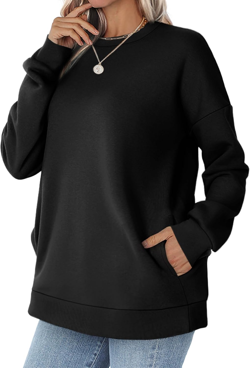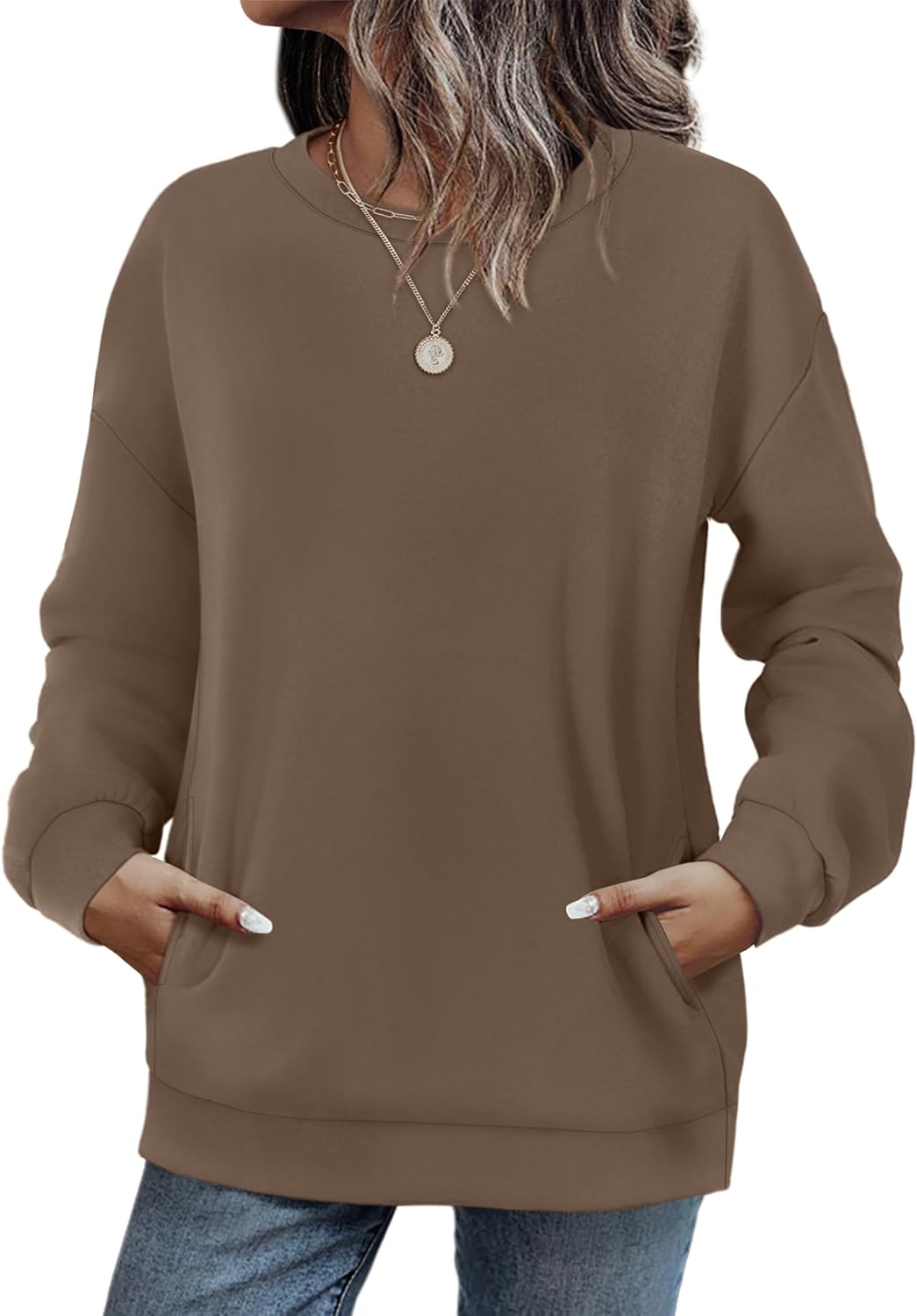 Womens Fall Fashion 2025 Crewneck Sweatshirts with Pocket Long Sleeve Tops