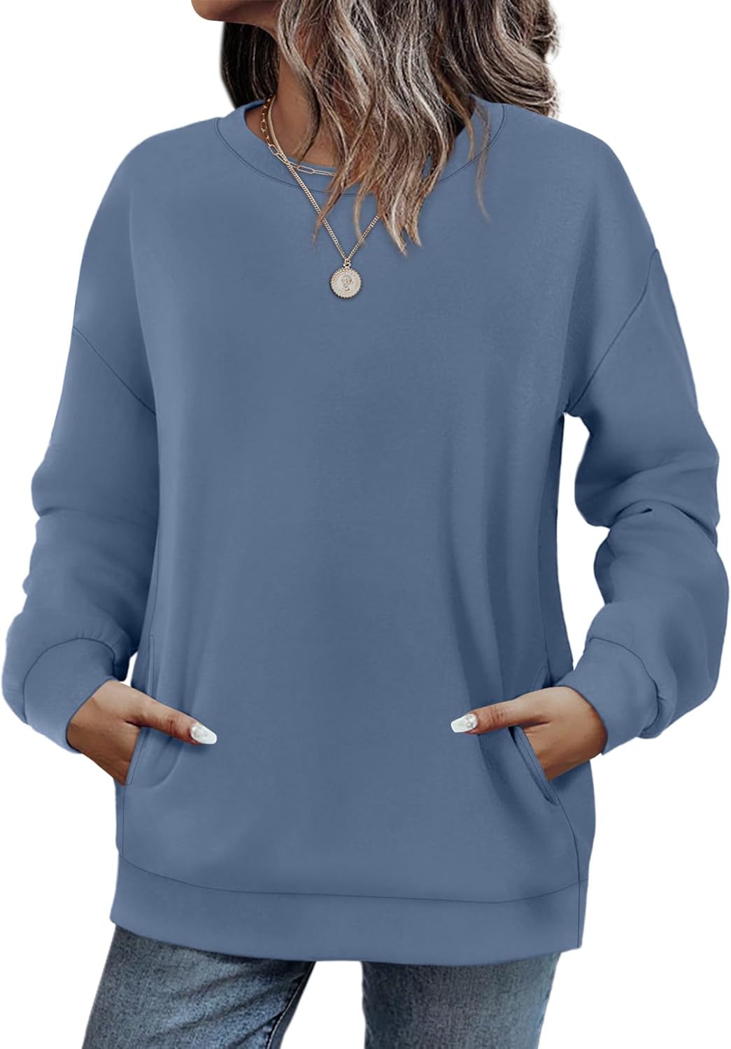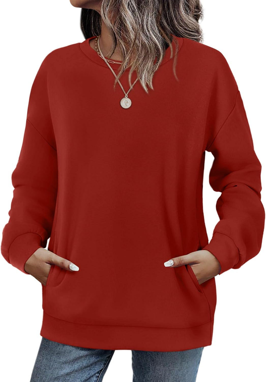 Fall Outfits for Women 2025 Crewneck Sweatshirts with Pocket Long Sleeve Shirts