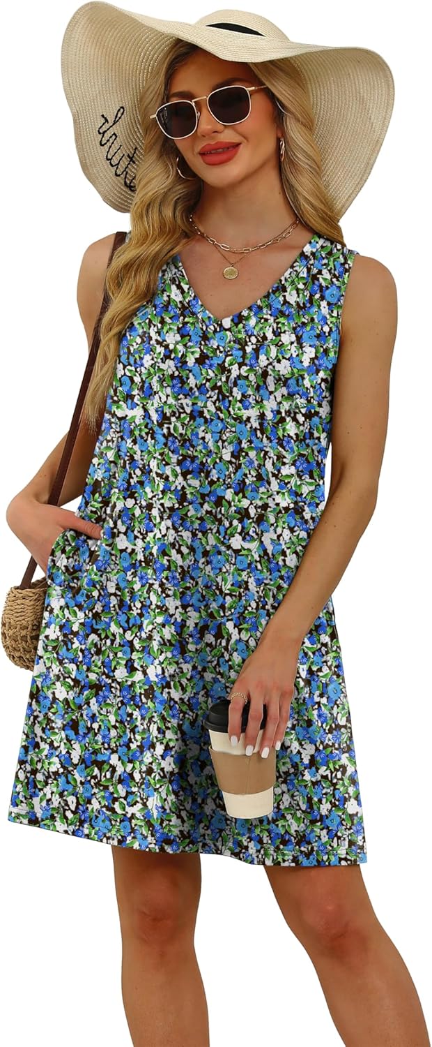 Casual Summer Dresses for Women V Neck Vacation Tank Dresses Resort