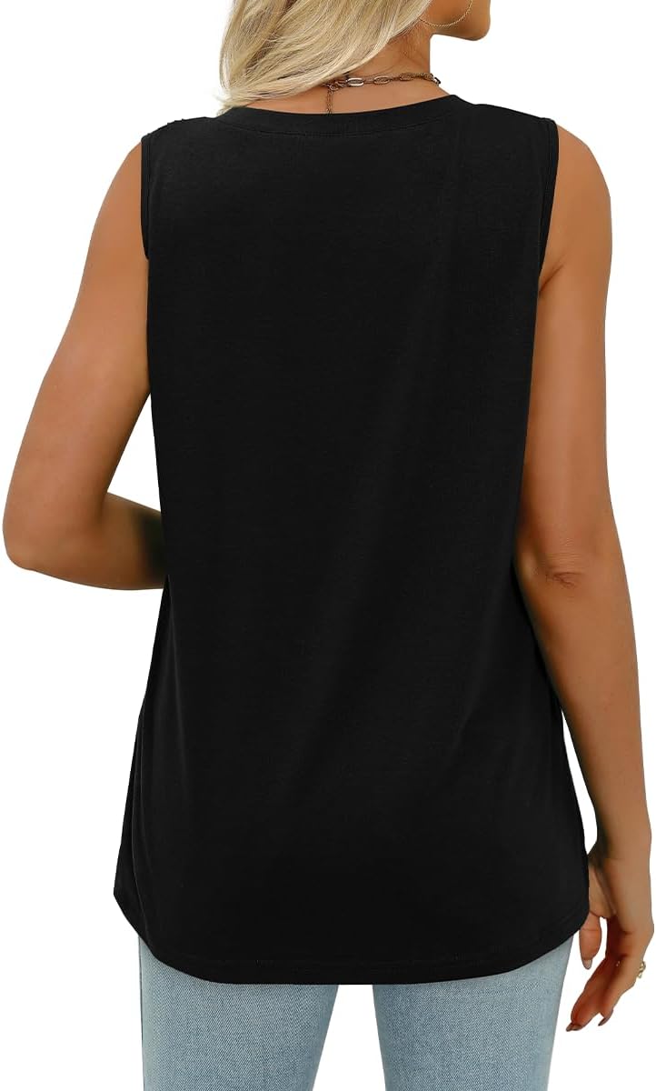Womens Tank Tops Loose Fit Pleated V Neck Sleeveless Tops Summer Casual