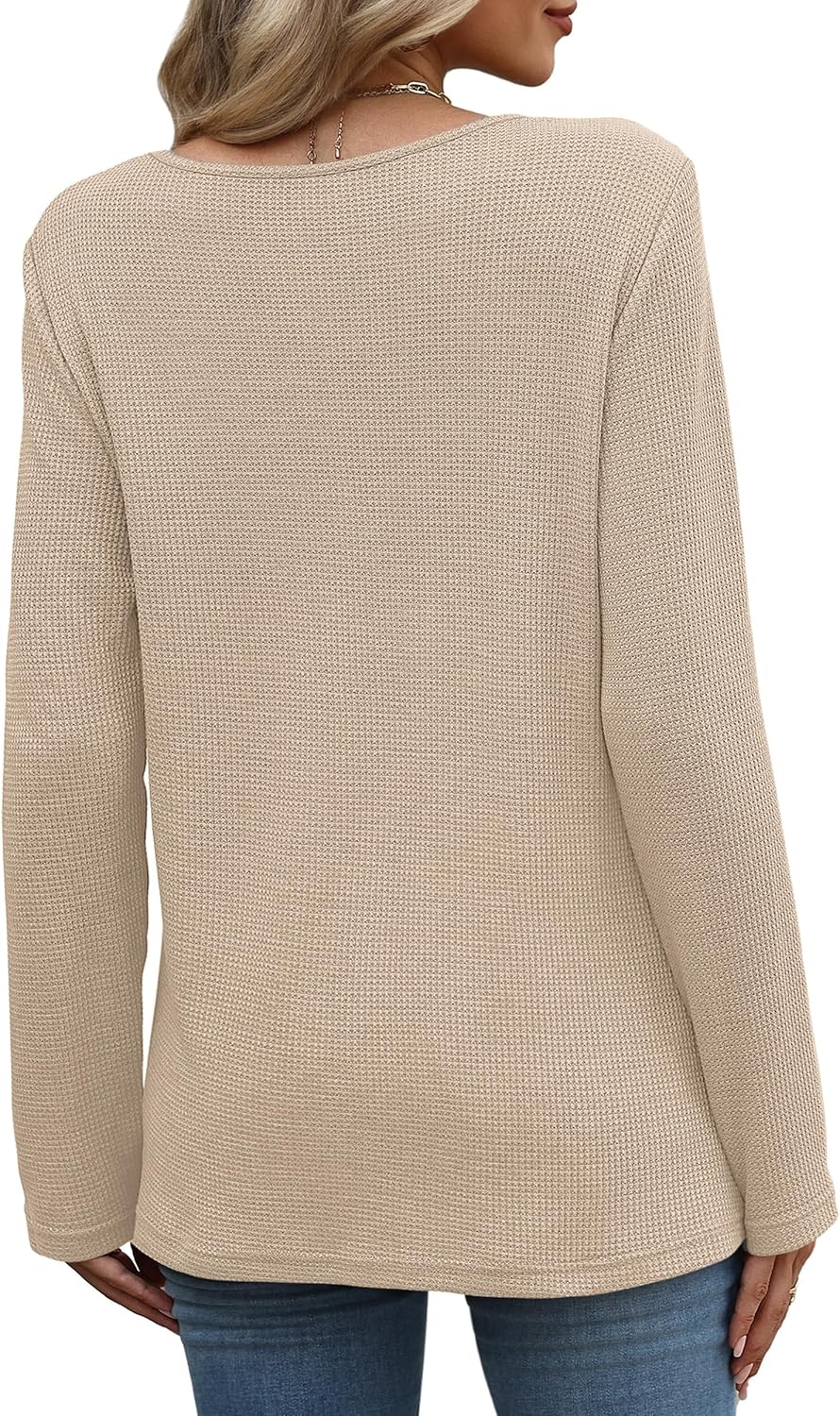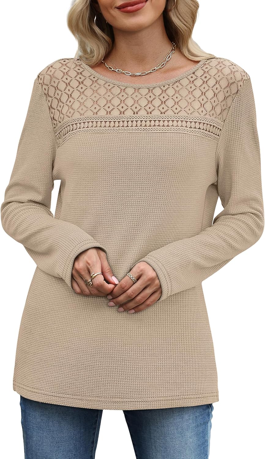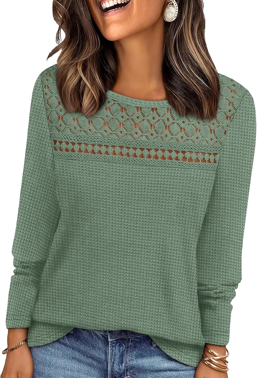 WIHOLL Women Blouses Long Sleeve Shirts Fall Fashion 2025 Lace Waffle Knit Tops
